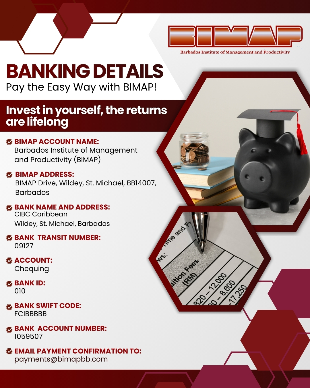 Please note that when paying electronically, you should email your payment confirmation to: payments@bimapbb.com